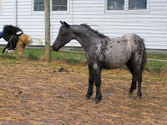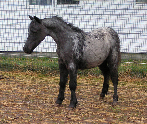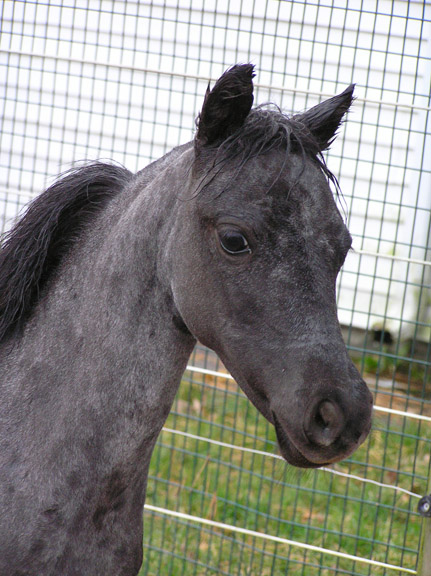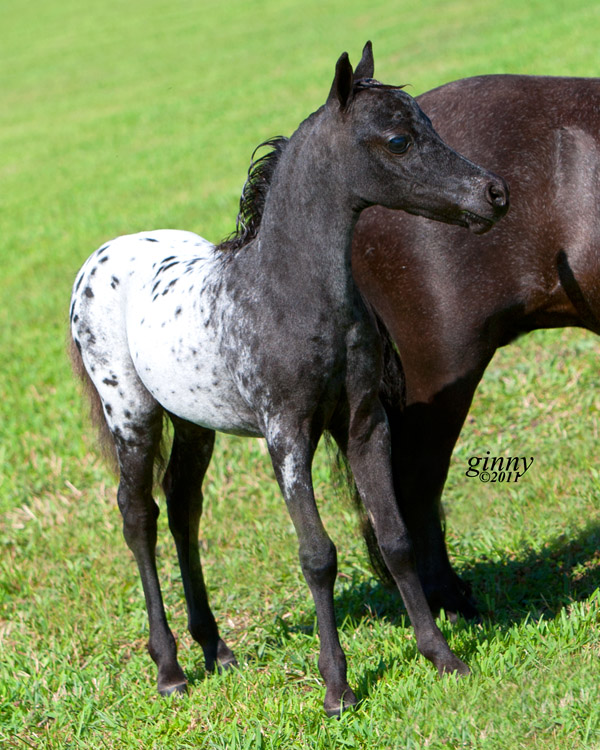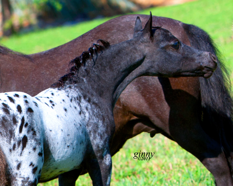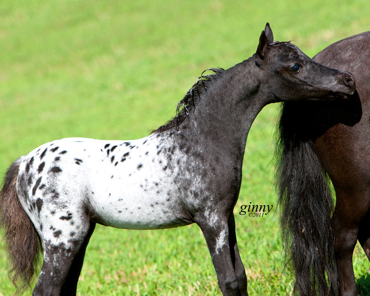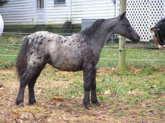 Mallory is 5 month old weanling filly and measures 27.50". She is AMHA/AMHR registered. Sired by Reh's Repeat Gene and our of Fallen Ash Scouts Not Forgotten (a daughter of L&D Scout). She has a lot of presence.